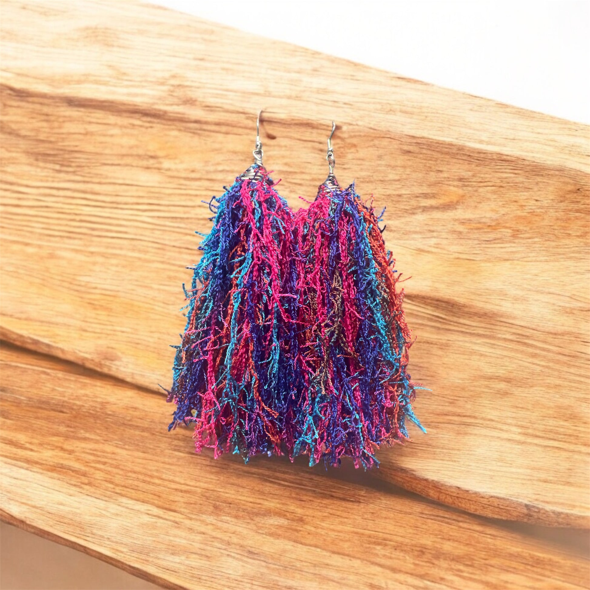 Add a touch of bohemian chic to your look with our Pink & Blue Scrubby Tassel Earrings. Handmade with textured fringes, these earrings are the perfect statement piece to elevate any outfit. Stand out from the crowd and radiate confidence with these unique and stylish accessories.